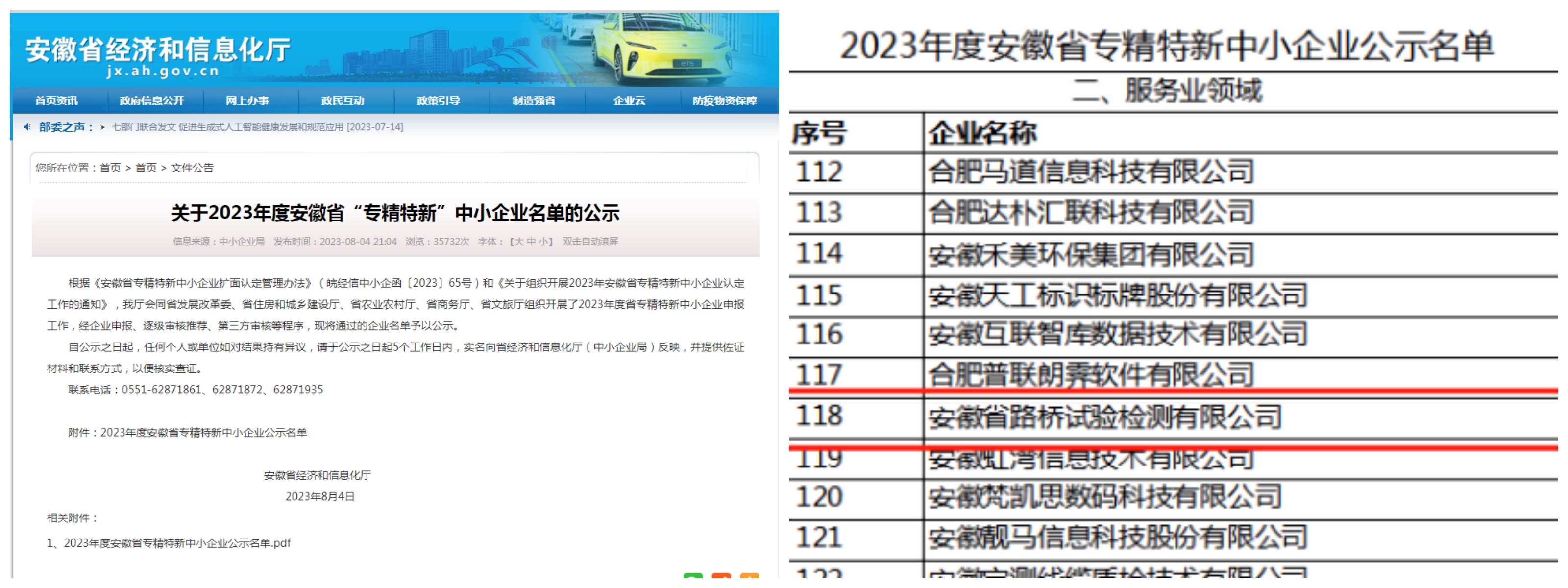 近日, 安徽省經濟和信息化廳發布安徽省2023年度“創新型中小企業”名單(第一批)和 “專精特新中小企業”名單,安徽省路橋試驗檢測有限公司兩項申報均獲批入選。
