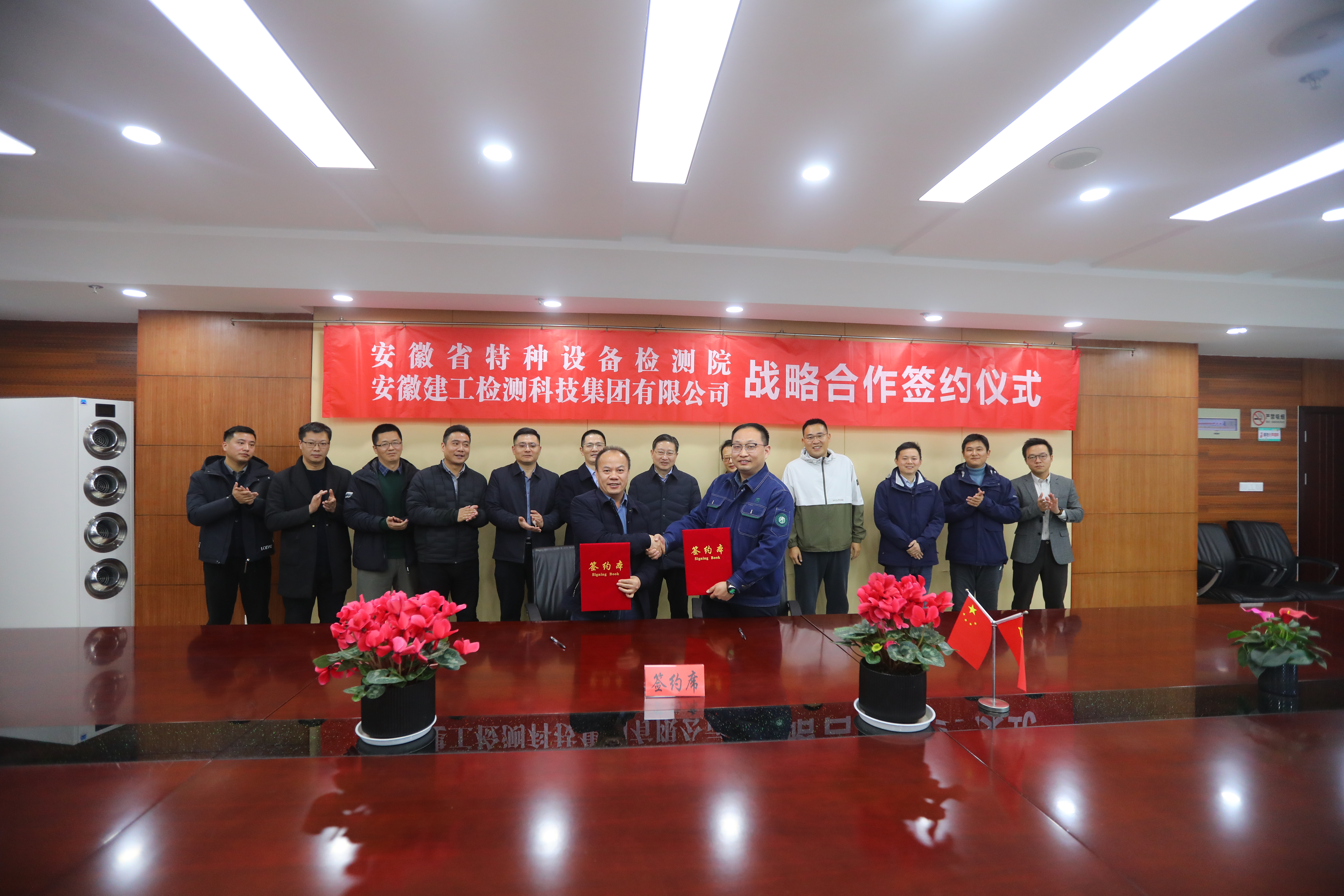 1月23日上午,安徽建工檢測科技集團有限公司(以下簡稱建工檢測)與安徽省特種設備檢測院(以下簡稱省特檢院)簽訂戰略合作協議。省特檢院紀委書記、副院長(主持工作)胡孔友與建工檢測黨委書記、董事長方申柱共同見證簽約。并就行業發展、深化業務合作等方面進行座談交流。